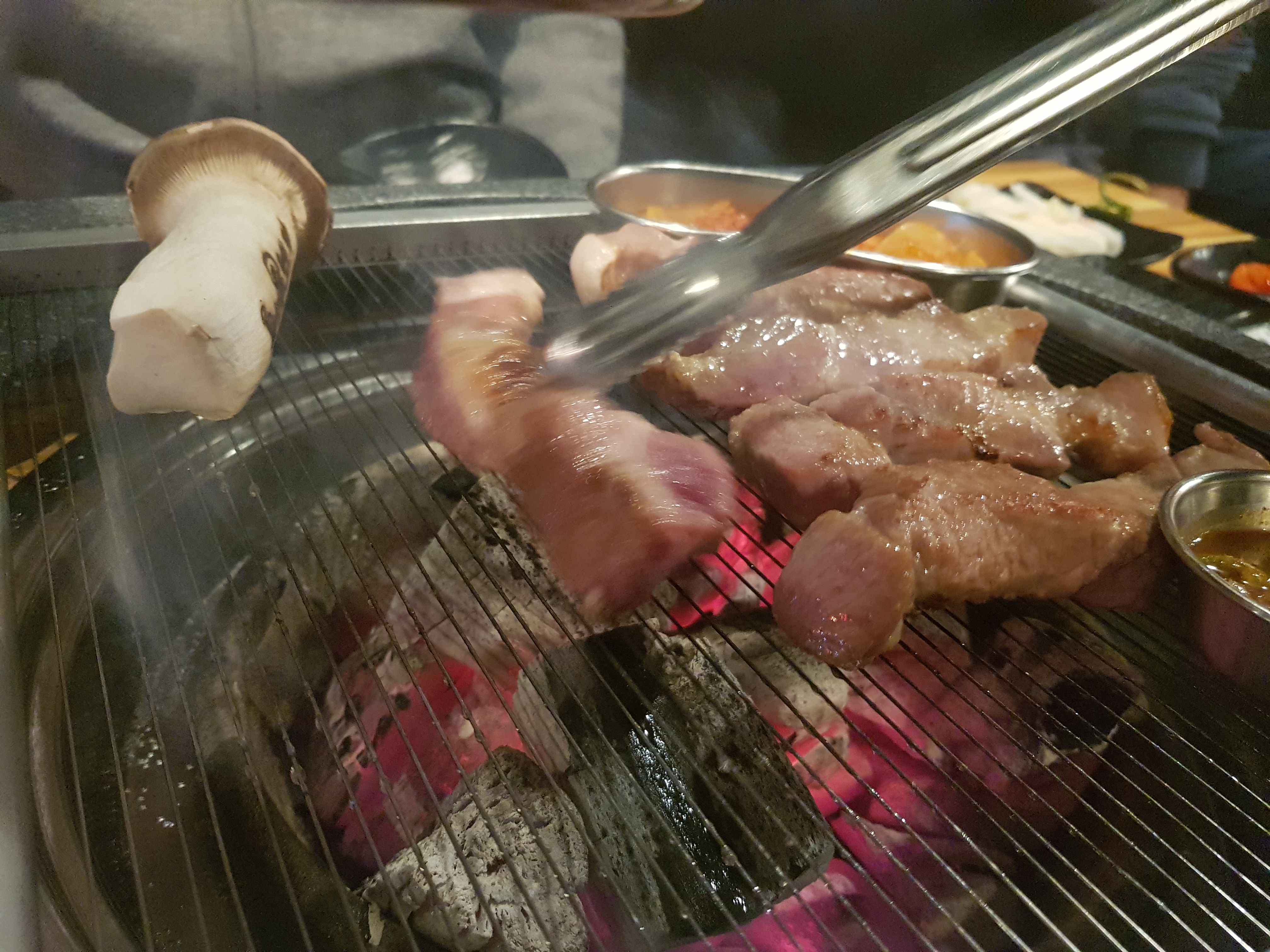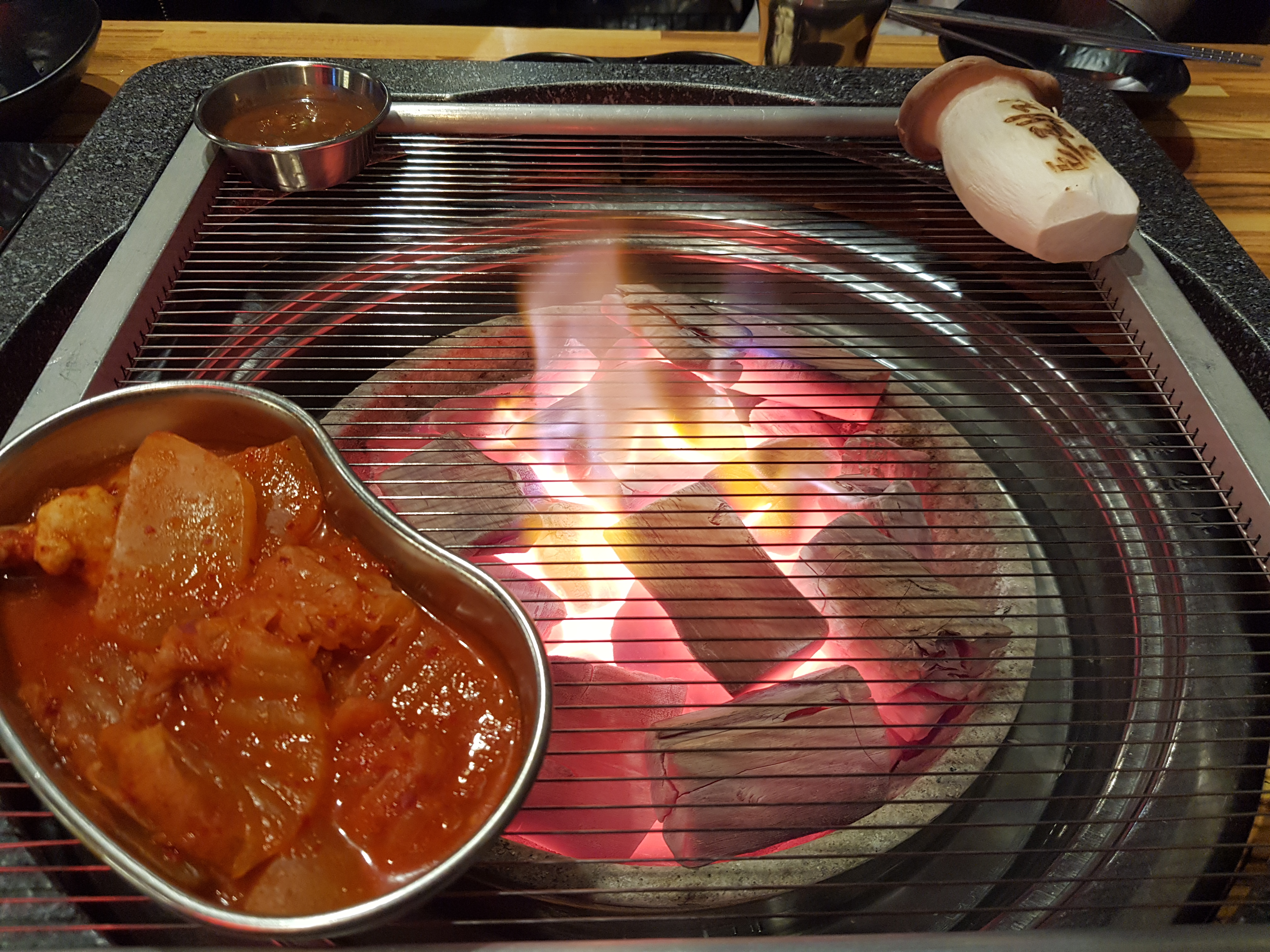 기본세팅이 되고 숯이 나오는데 숯불이 너무나 강해 사람은 물론 고기도 굽지 못하고 몇분뒤에 가장자리부터 고기를 놓고 구워먹어야 합니다. 숯불만 봐도 역시 잘 왔다라는 생각이 들정도로 숯이 예쁩니다.