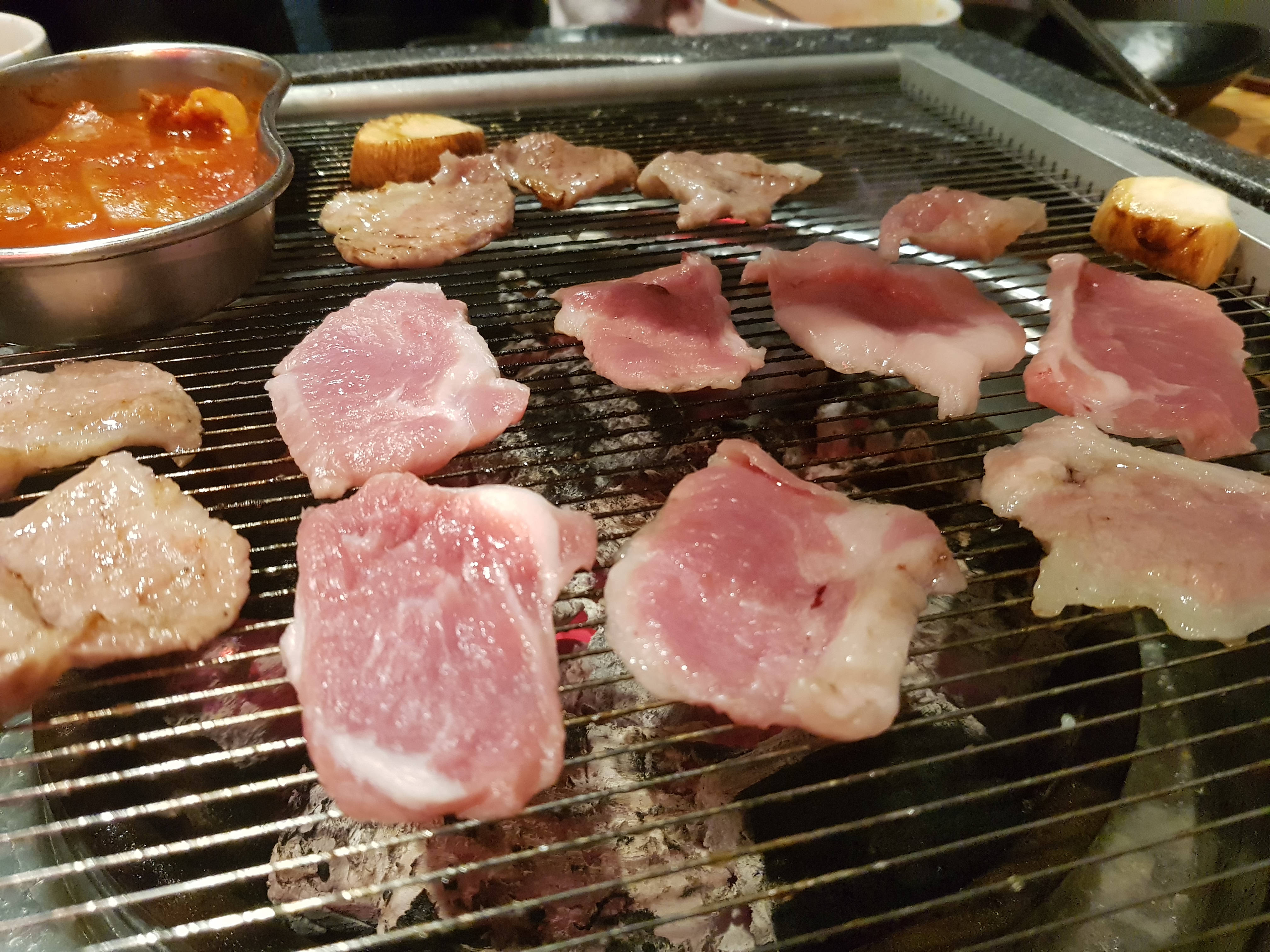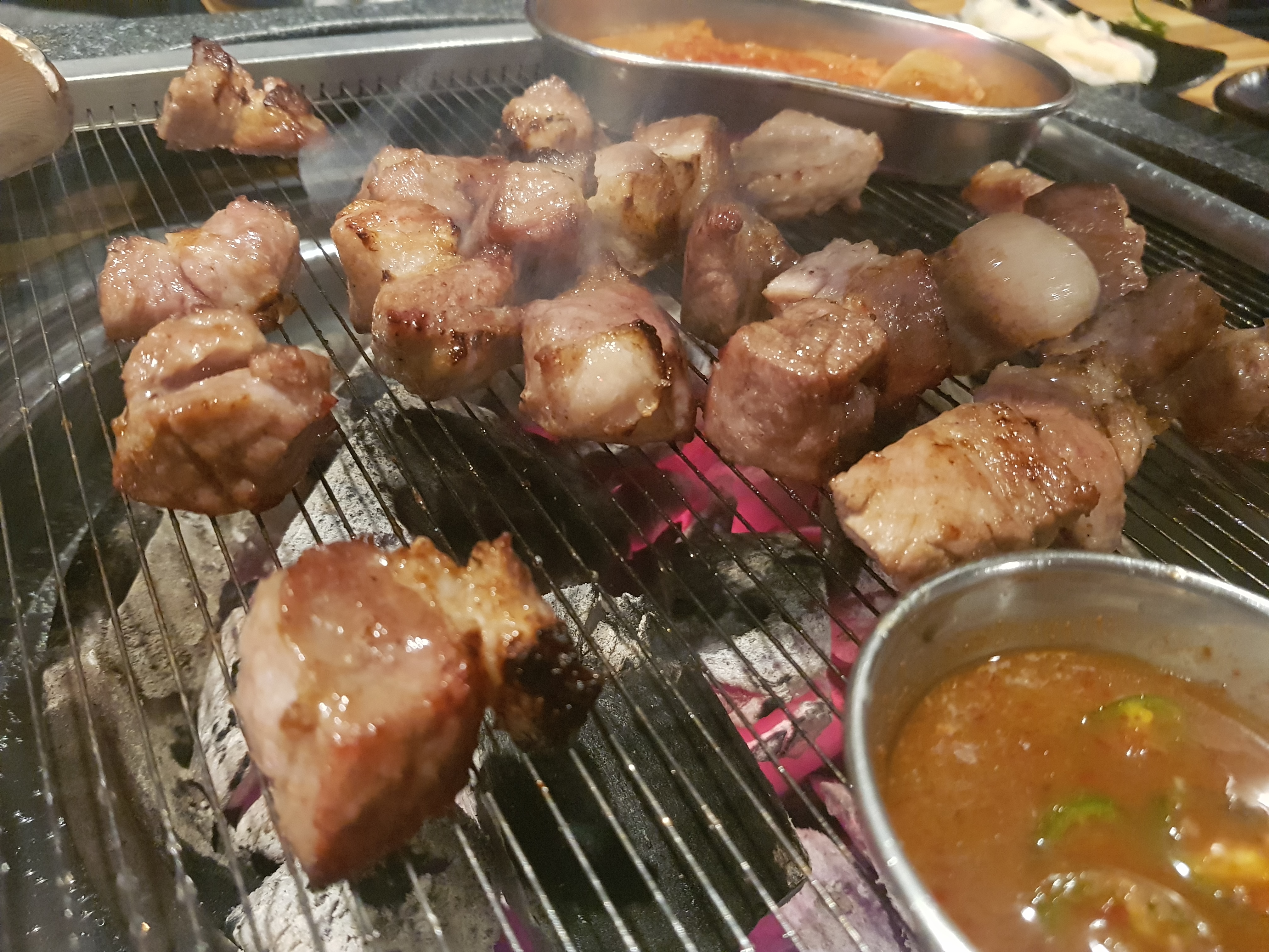 이곳에서 처음 무조건 시켜야 하는 두툼한 목살입니다. 양이 작아보일 수 있습니다. 구워놓고 보면 다른곳하고 같은 양입니다. 목살의 느낌은 전혀 뻑뻑하지 않고 어느 부위를 먹더라도 고소함을 느낄 수 있는 메뉴입니다. 음주를 하지 않는다면 목살을 추천합니다. 계속 먹어도 질리지 않을정도로 괜찮았습니다.