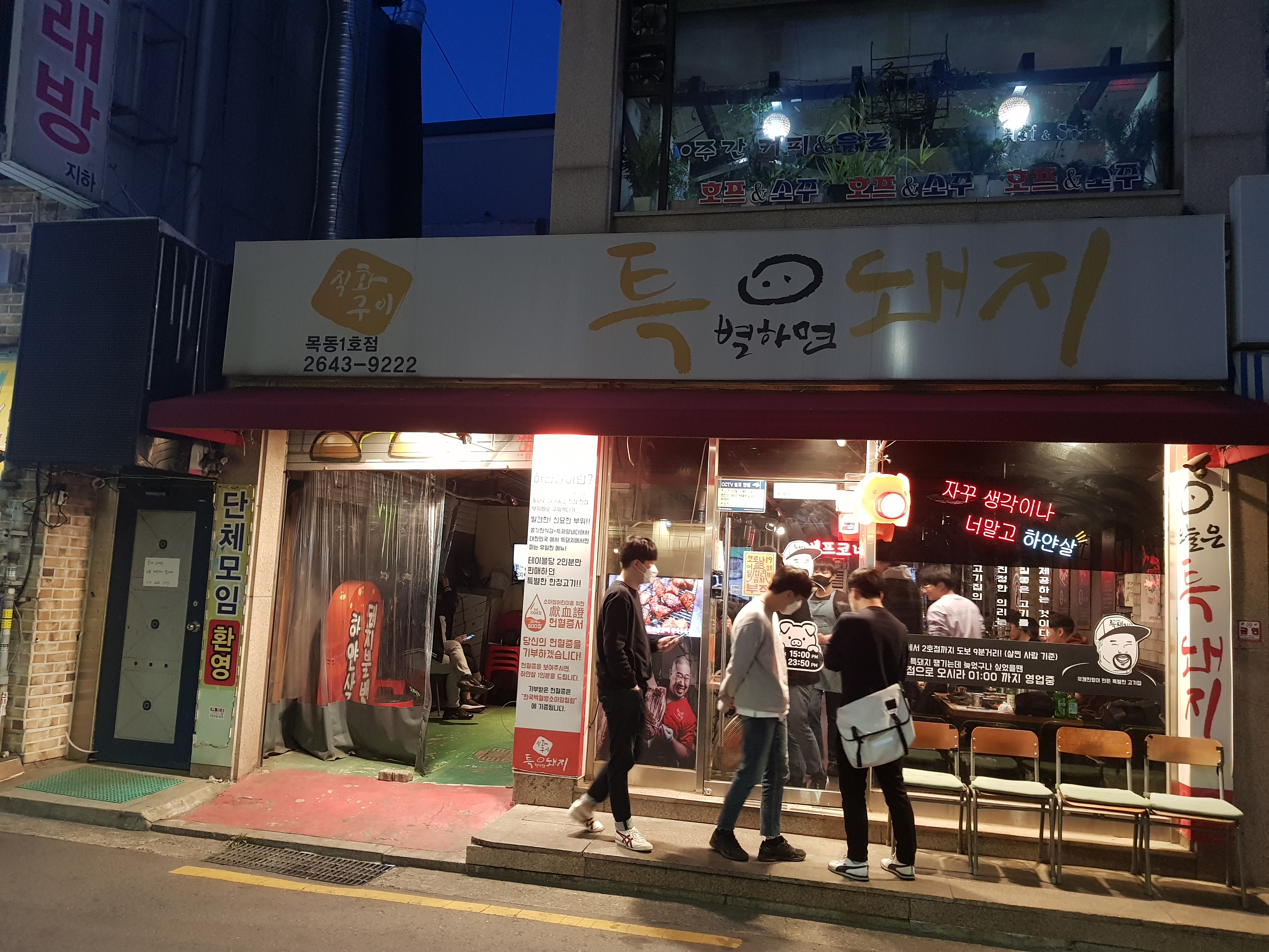 이번에는 먼저 포스팅한 숯불 닭갈비집 『팔각도』와 같은 사장님이 운영하는 돼지고기 맛집입니다. 팔각도에 만족하면 돼지고기는 더 마음에 드실겁니다. 팔각도는 오목교역에 있고 '특별하면 돼지' 1호점은 목동역 8번 출구에 있고 2호점은 2번 출구에서 홍익병원사거리를 건너 주유소 옆길로 들어가야 합니다. 2호점이 멀다보니 1호점을 추천합니다.