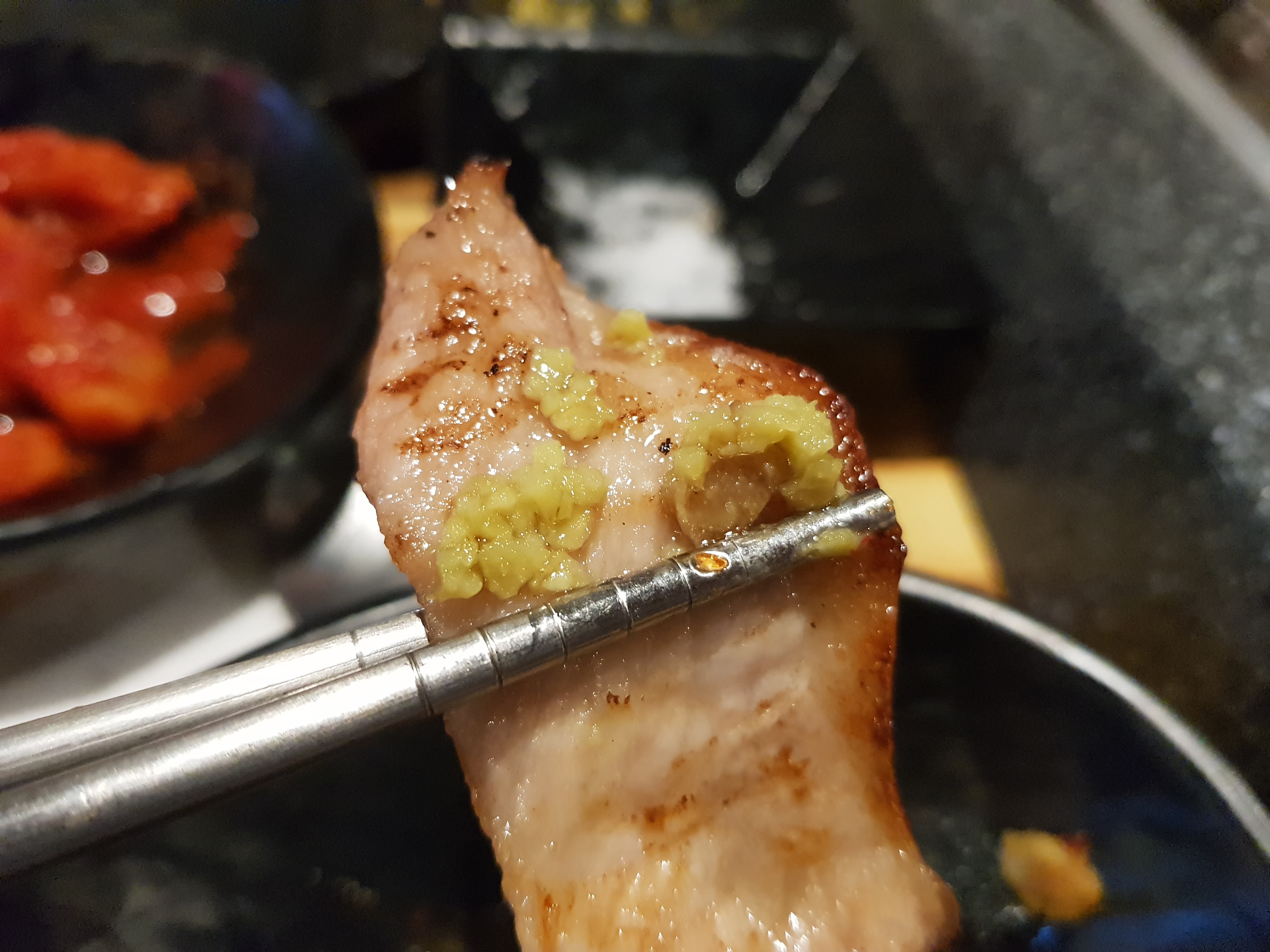 목살을 먹기 위해서는 처음에는 ①소금으로 한번 먹어보고 ②무침으로 먹어보고 ③생와사비하고 먹고 ⑤멜젓갈하고 먹어봐야 합니다. 전 생와사비와 소금으로 주로 먹었습니다. 몇번 가봤는데 지인분들도 비슷한 의견입니다.