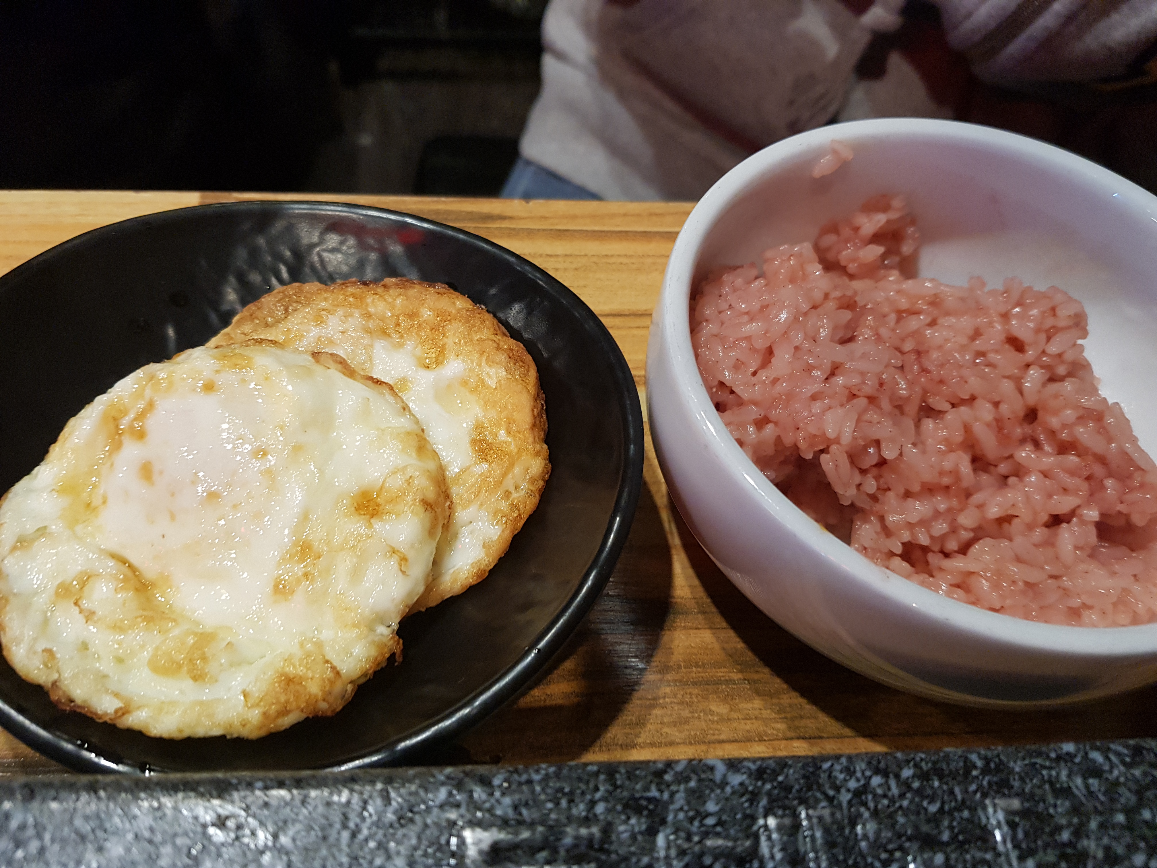 귀한 손님에게 집밥보다 맛있는 밥을 대접하는 밥이라고 주문과 동시에 초고압력 2기압 쾌속으로 갓지은 밥을 제공한다고 되어 있는데 별로입니다. 점원분이 서비스라며 계란과 밥을 비벼 먹을 수 있게 큰그릇과 버터를 줍니다.