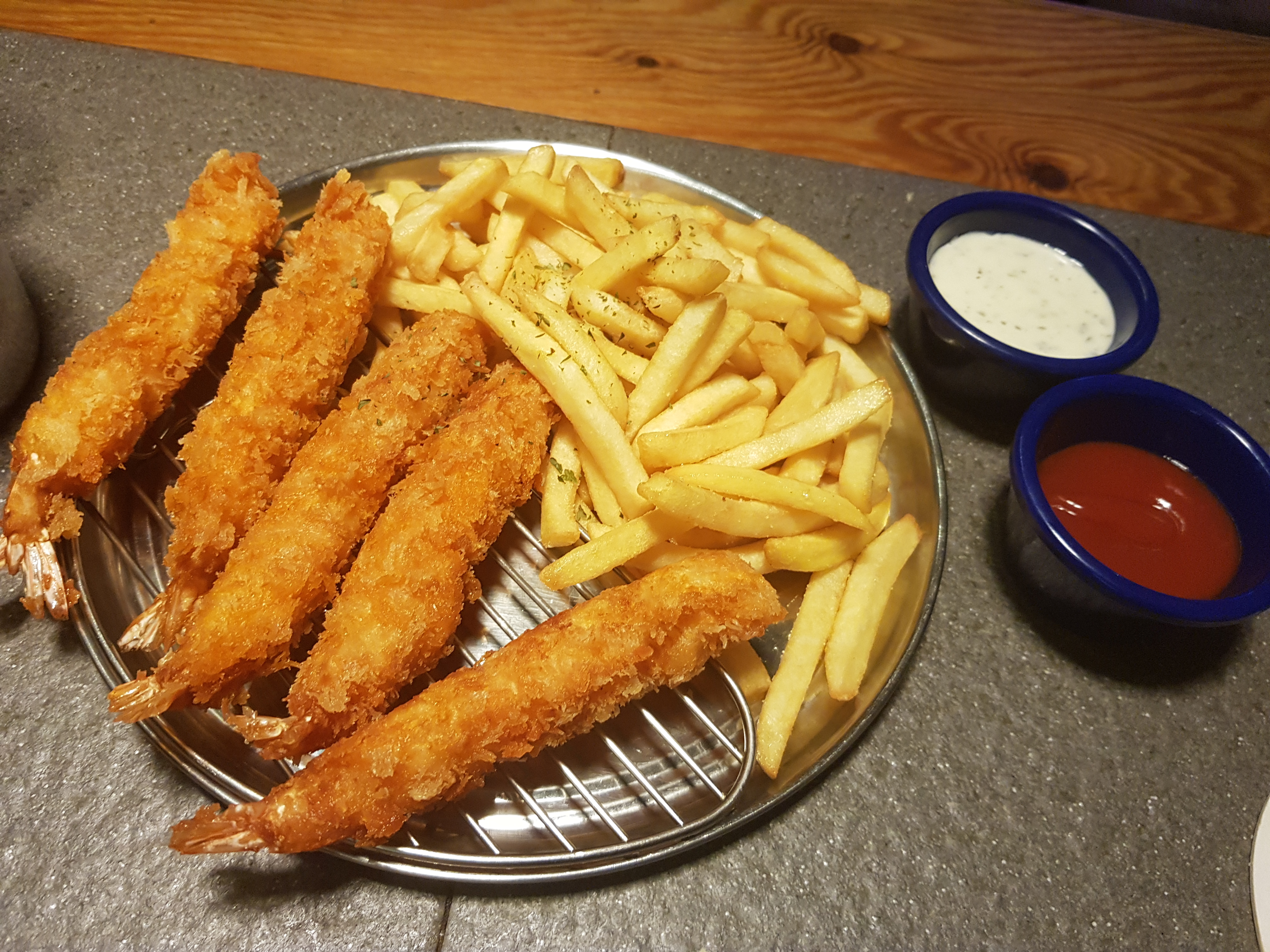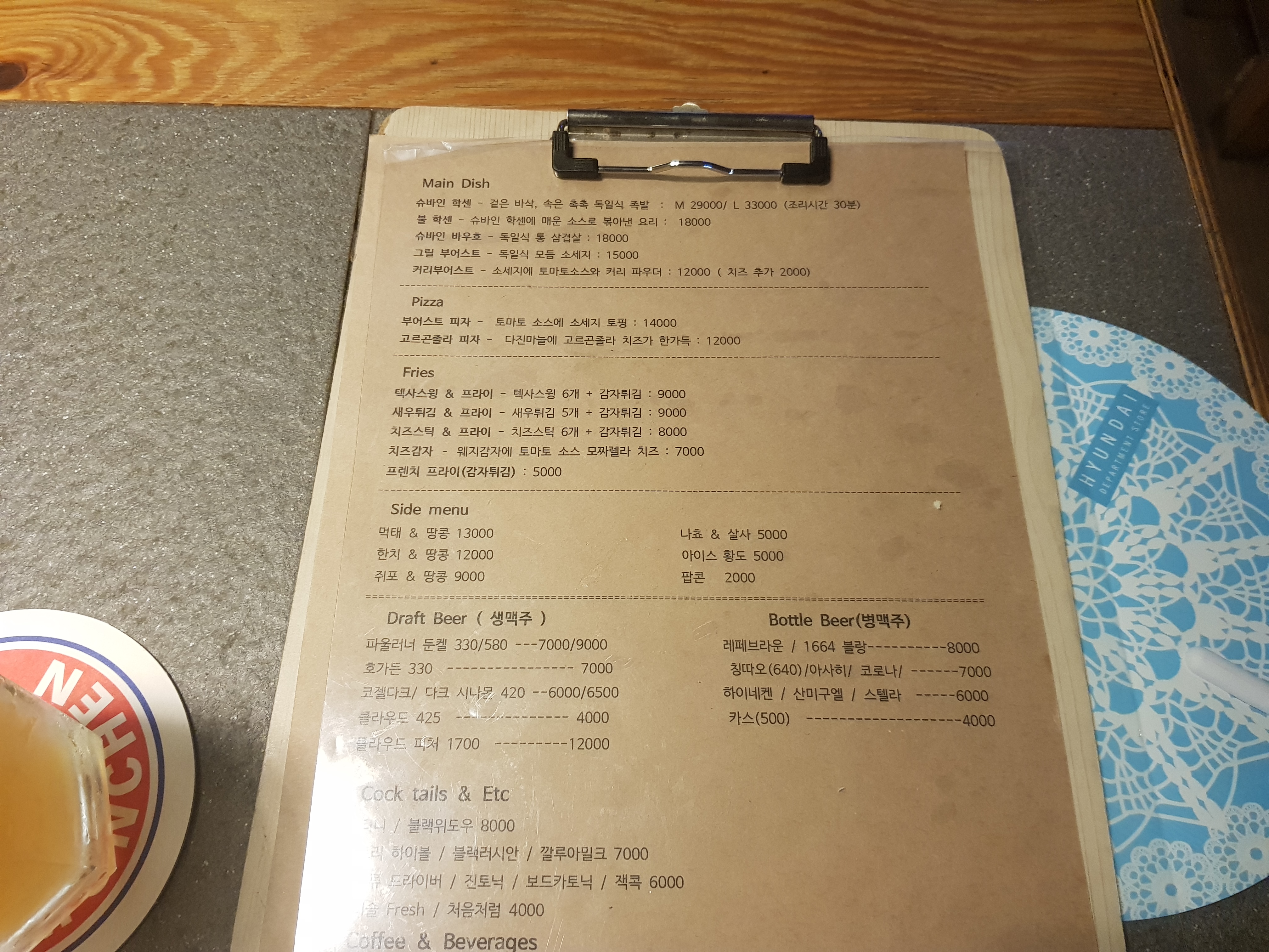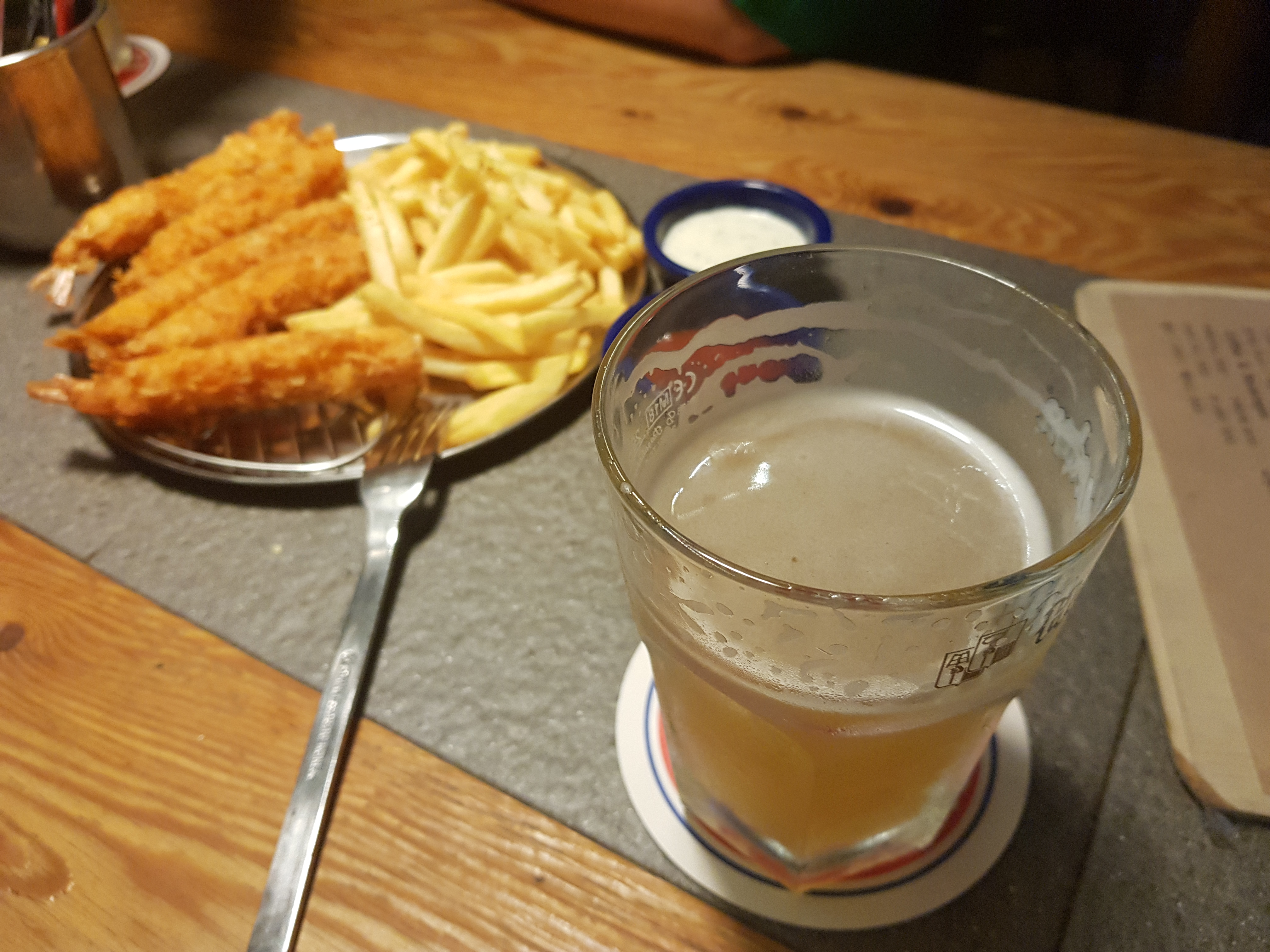 우연히 맥주한잔을 할려고 집앞에 산책하다가 들어간 곳입니다. 크지는 않지만 분위기도 좋고 독일족발인 학센을 판매하는 곳입니다. 우리 가족은 그냥 한잔만 하기 위해 들어가 간단하게 '새우튀김+감자튀김'을 주문했습니다.