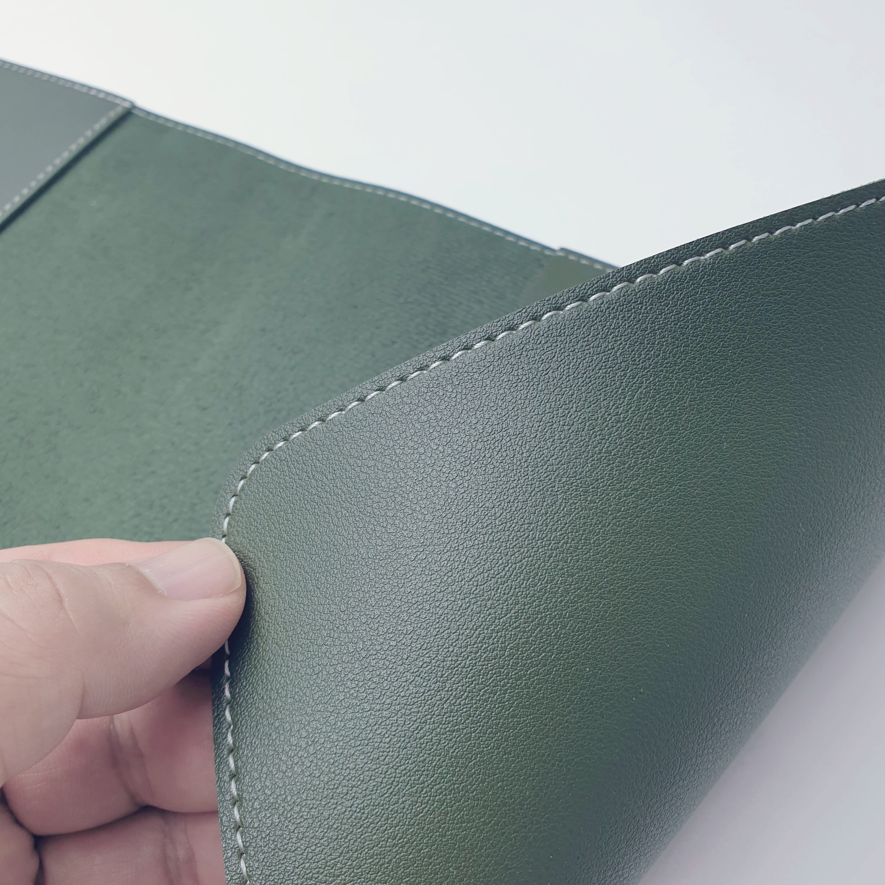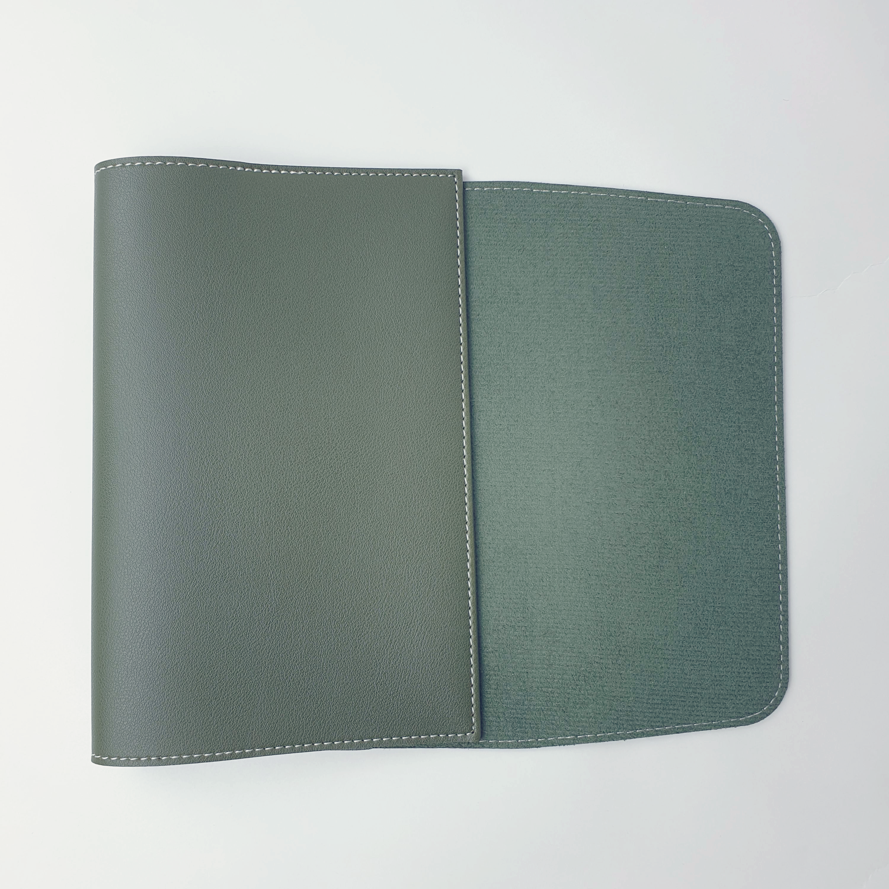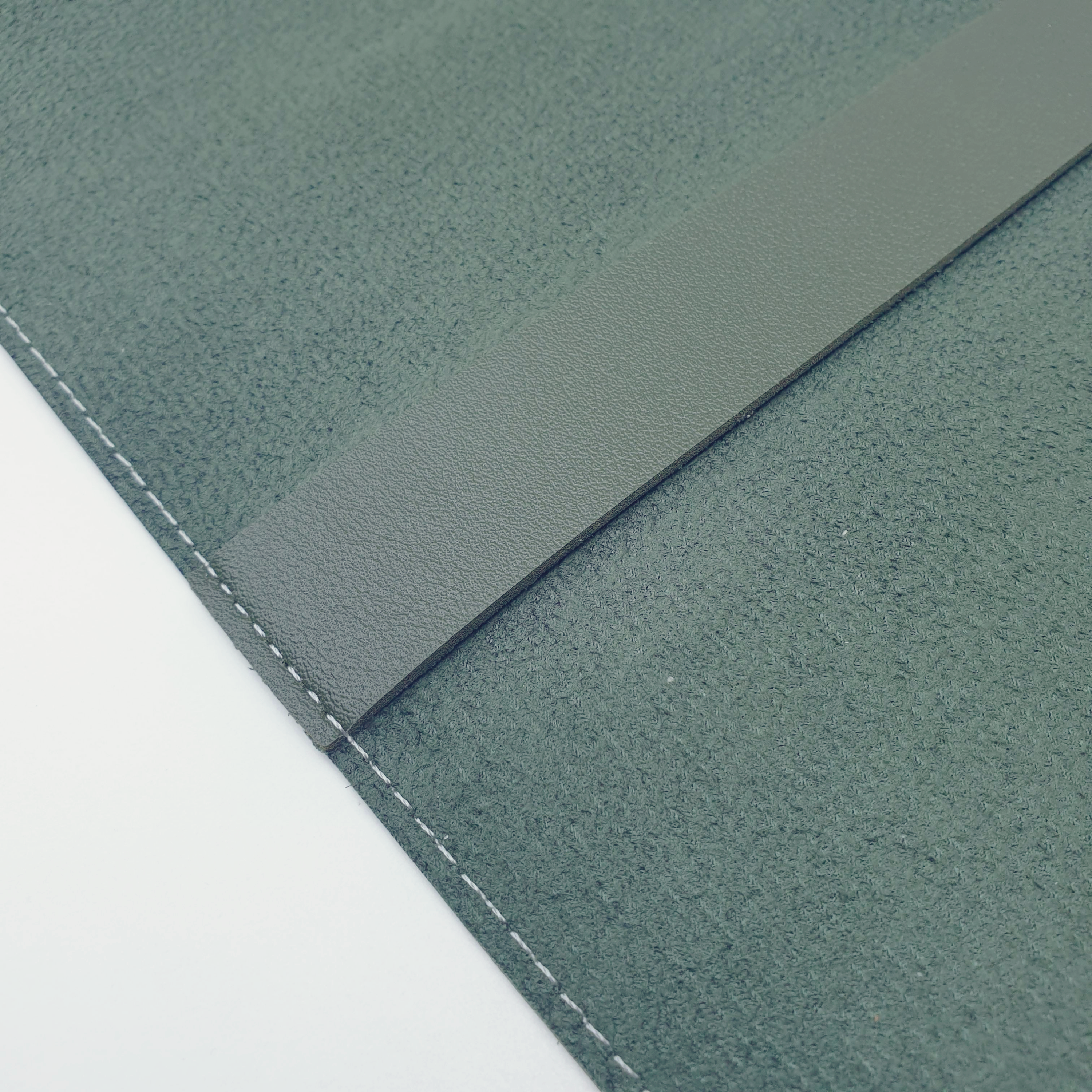 안쪽의 질감은 스웨이드 느낌으로 부드러우면서 미끄러지지 않아 책이 흔들리지 않게 잘 고정할 수 있게 되었습니다. 책의 앞뒤 페이지를 넣고 사용하면 됩니다. 가죽 공예 전문가가 제작하여 미싱이나 제단이 매우 깨끗하게 되어 있어 타사 제품과 비교를 할 경우 매우 높은 퀄리티의 품질을 보여주고 있습니다.