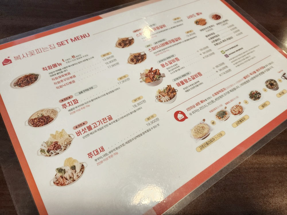 복사꽃피는집 송산점에 가서 큰 기대하고 가족들과 방문을 해봤습니다. 우리는 별관으로 갔는데 비닐하우스 같은 곳을 개조한 자리였습니다. 손님이 너무 많아 정신이 없고 송산과는 차이가 너무 많이 납니다. 이번에는 지난번에 못 먹어본 바베큐등갈비와 제육볶음을 주문을 하려고 했습니다. 손님이 너무 많아서 그런 건지는 모르겠지만 1인메뉴를 주문하려고 하니 제육은 2인부터 주문이 되니 쭈꾸미를 주문하라고 합니다. 1인 메뉴를 왜 만들어놓고 주문이 안 되는 건지?여기가 본점이 맞나 싶을 정도로 기분이 좋지 않게 쭈꾸미와 바베큐등갈비를 주문했습니다.