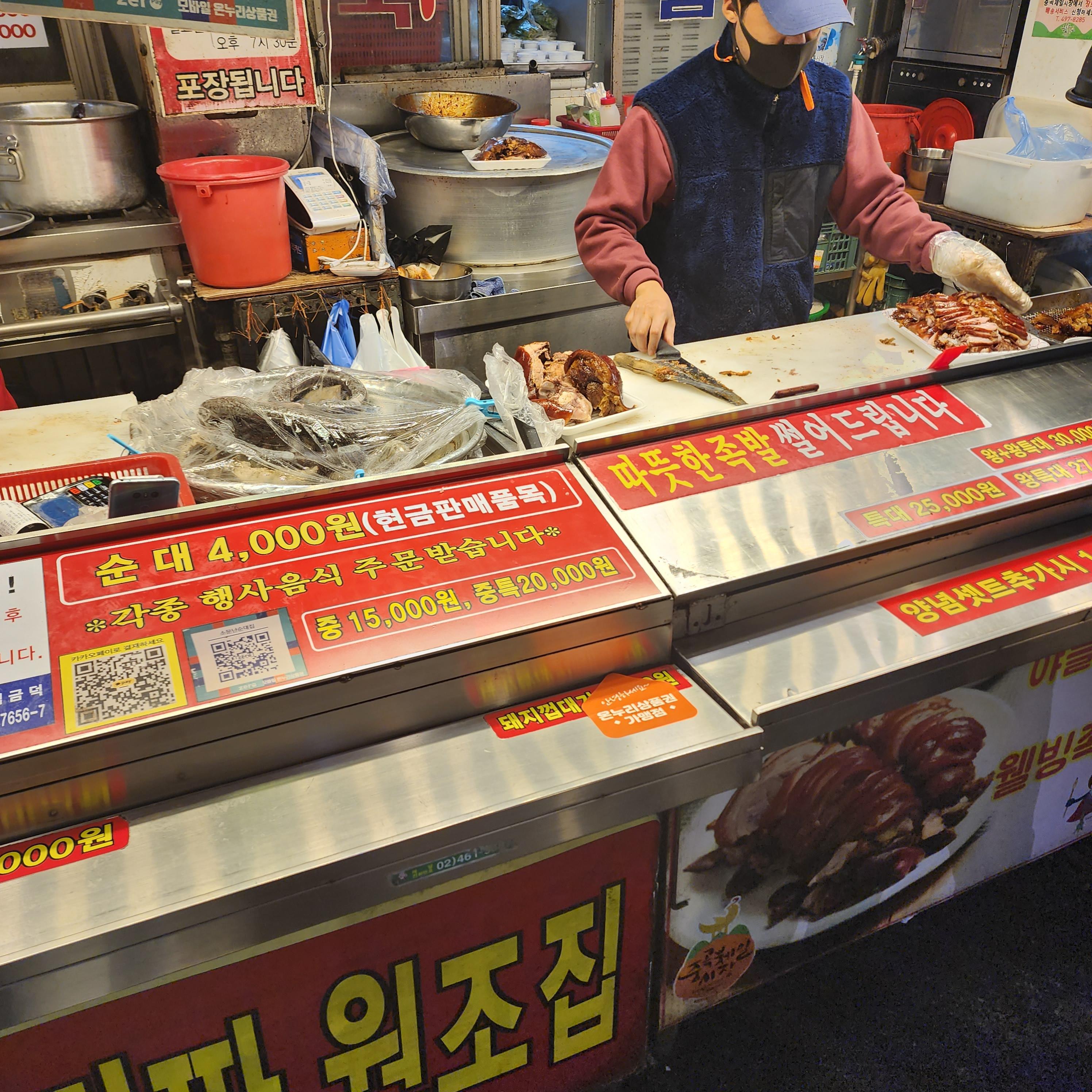 시장 안에 순대국을 파는 가게가 몇개가 있었습니다. 유명한 곳은 '소문난순대국왕족발'과 건너편에 유명한 순대국집이 있는데 거기도 괜찮다고 들었습니다. 이번에 방문을 해본 곳은 소문난순대국집입니다.