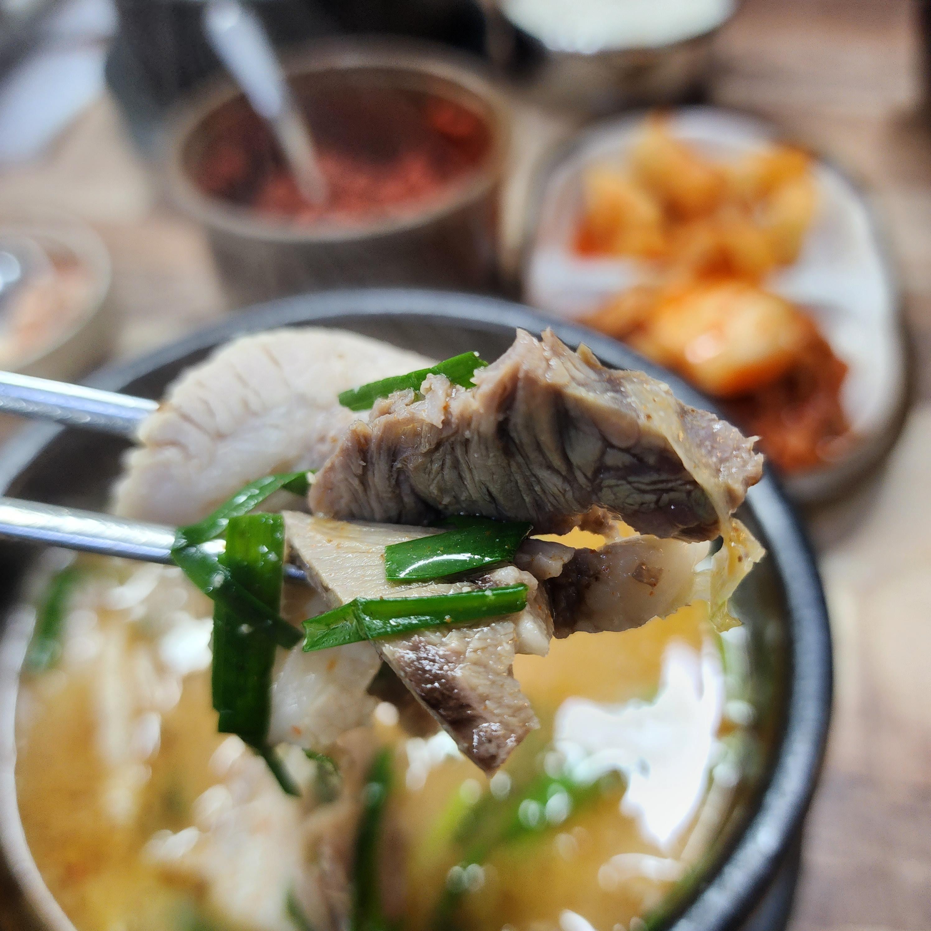우리는 순대국으로 주문했습니다.
