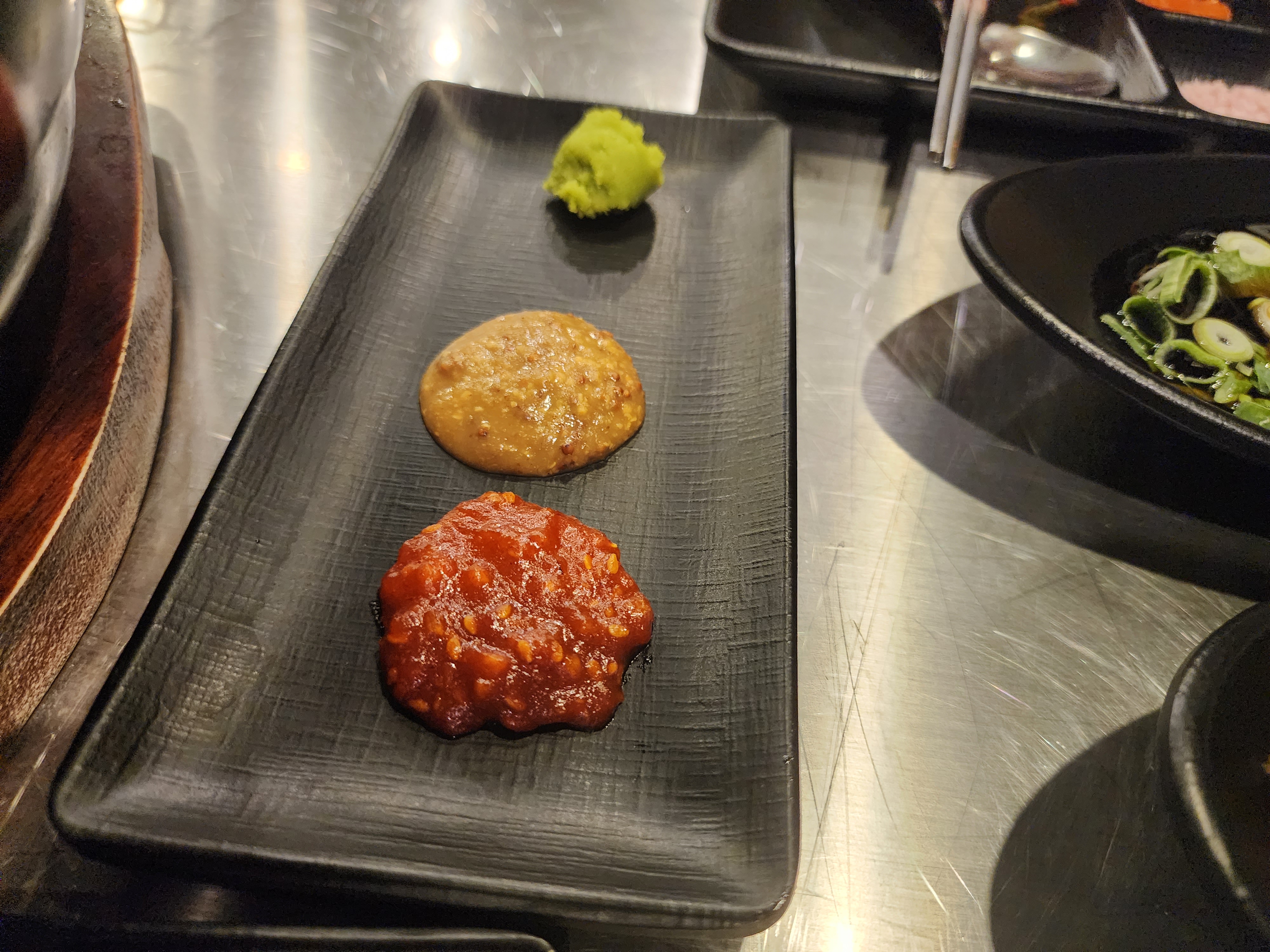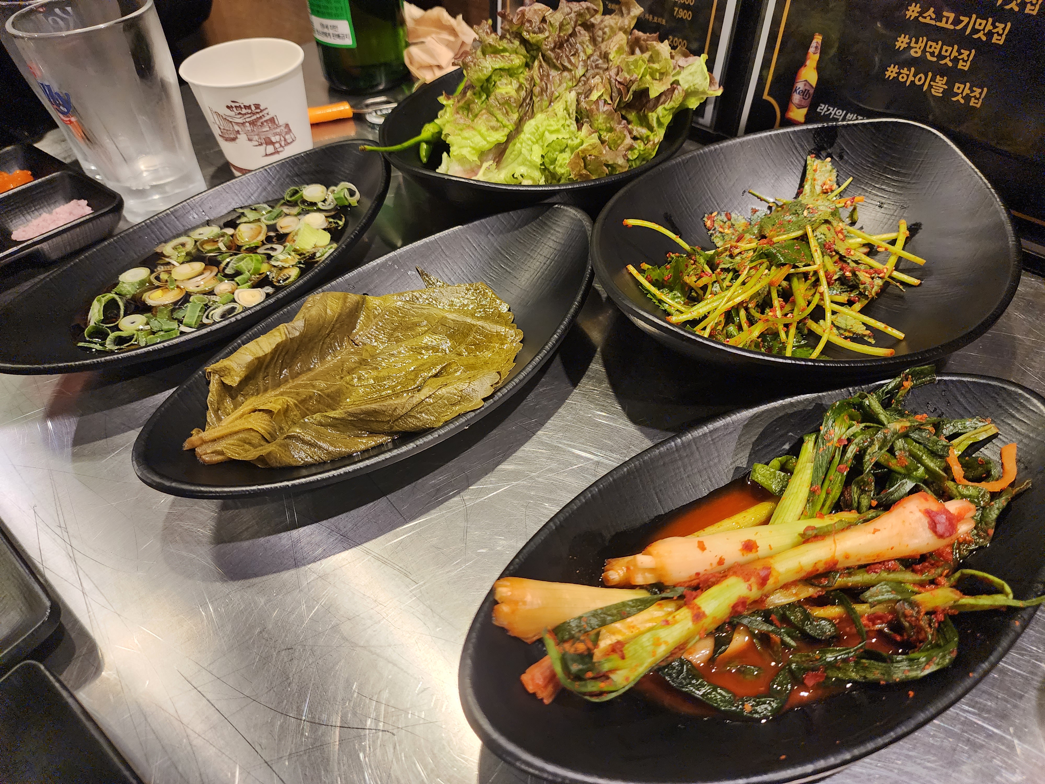 오목교역에 있는 많은 고깃집들이 점원이 구워주는데 이곳도 비슷한 음식점입니다. 부안집과 비슷하게 여러가지 소스로 먹을 수 있습니다. 고기는 지방이 많이 있는 편이였습니다. 요즘 제주도 고기집처럼 비계가 절반 이상입니다.