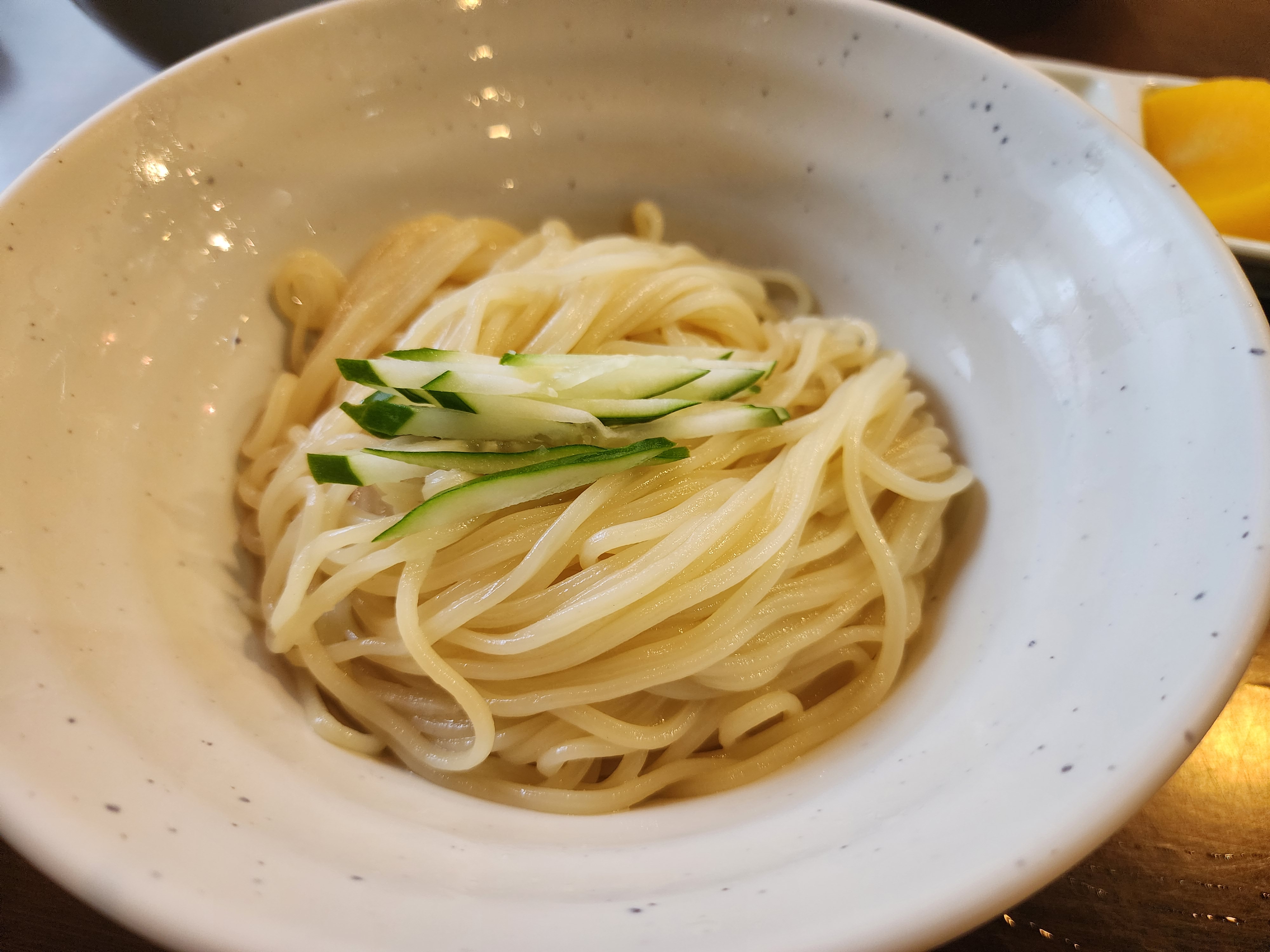 얇은 기계면으로 양이 많은 편입니다. 짜장은 모든 재료가 채썰기로 되어 있어 면과 짜장을 같이 먹을 수 있습니다. 짜장의 양도 많고 짠맛도 적당히 괜찮은 맛입니다.