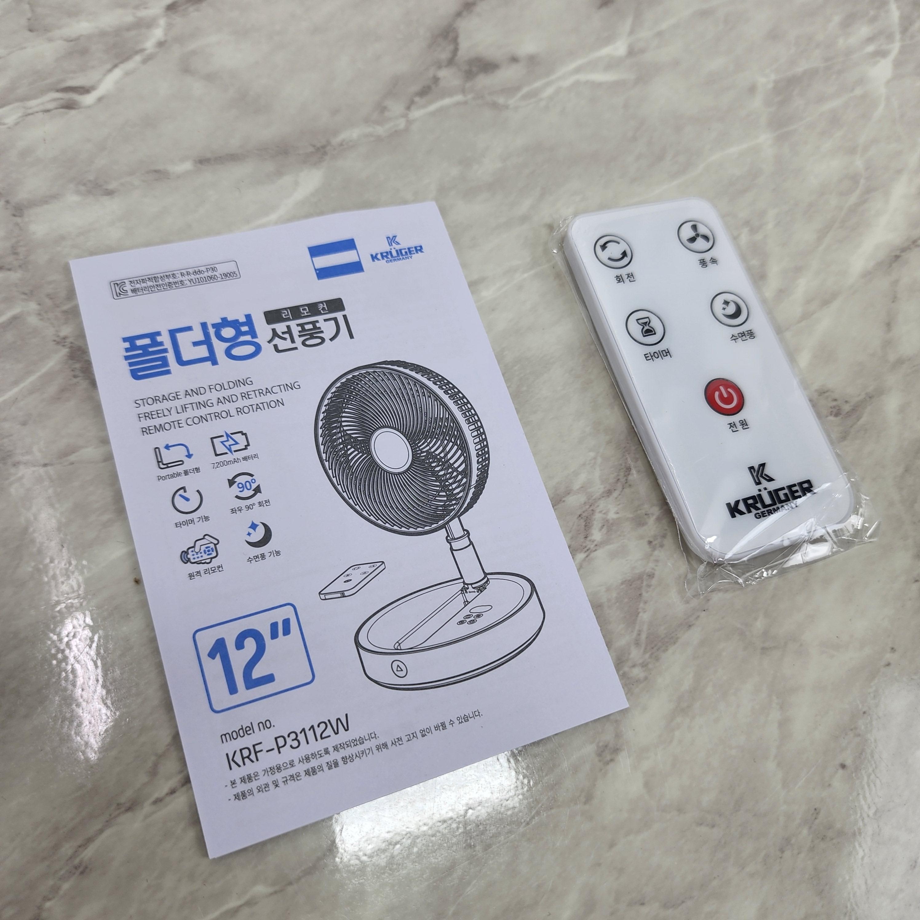 하나로마트에서 판매하는 크루거선풍기입니다. 금액은 10만 원 정도에 판매가 되고 있습니다. 손으로 들고 다니면서 쓸 수 있는 포터블 선풍기는 아니고 캠핑장이나 야외에서 쓰기에 아주 좋은 선풍기입니다. 일반 선풍기(14인치)보다는 약간 작은 12인치 선풍기로 배터리가 내장되어 있고 탁상용이나 스탠드용으로 모두 사용할 수 있습니다