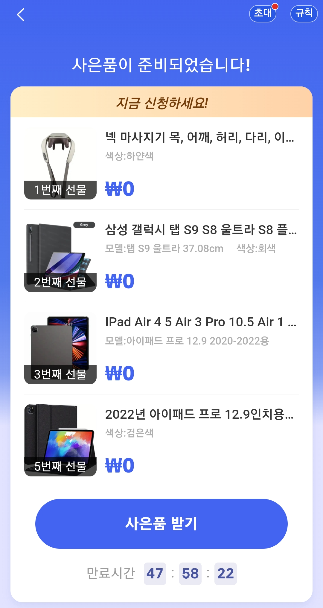 무료 사은품을 받을 수 있도록 초대를 수락해 주시겠어요?